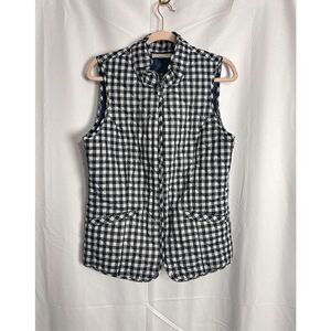 Talbots navy and white checkered vest || size small || pockets || excellent condition with minimal wear || zip up closure || fits more like a medium imo ||