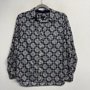 Talbots navy blue printed button-down, collared shirt, S