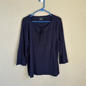 Talbots navy front tie 3/4 sleeve cotton and Modal extra large top