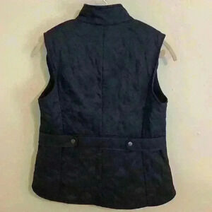 This vest is lined up with felt and perfect for fall. Measures 17” from armpit to armpit and is 22” long. Size small.