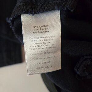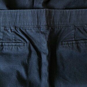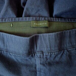Talbots navy cotton/rayon/Spandex blend stretch ankle pants with comfort waistband and faux back pockets.