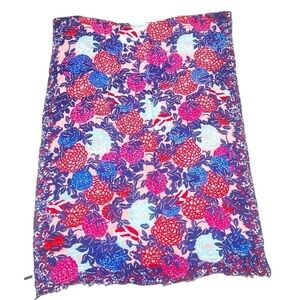 Talbots navy/blush/red/aqua floral print rectangular fringe hem scarf