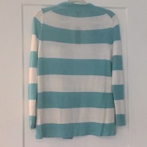 Ladies turquoise and white striped cardigan sweater, open front no buttons, new with tags retail $89.50