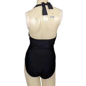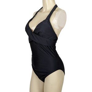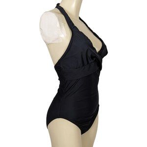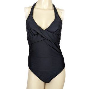 Talbots one piece halter style wrap bust black swimsuit size 8