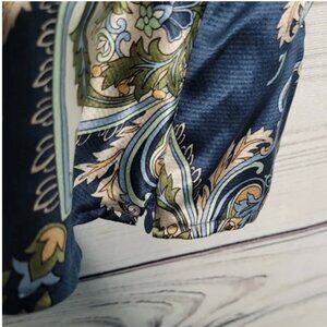 Talbots blouse: green blue, silk, side zip, paisley print, plus size, v neck