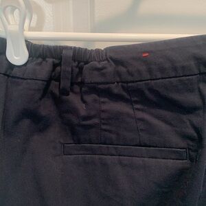 Navy cropped ankle, cotton pants. Alittle stretch, Zip front button closure,button detail at the ankle. Belt loops, and some elastic in the back waist. worn just a couple times 20 inch inseam