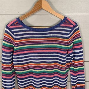Talbots pastel colored horizontal striped woven linen 3/4 length sleeve size P