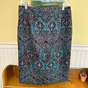 Talbots pencil skirt knit with lining blue green printed pattered pencil skirt 6