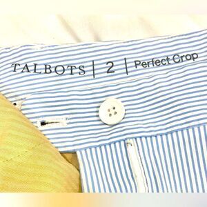 Talbots perfect crop white&blue stripped pants 3 buttons at ankle length size 2