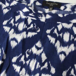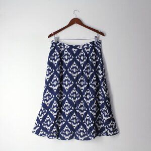 Talbots petite 12P Button-Front A-line skirt I-kat blue white