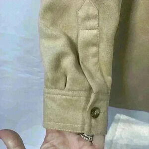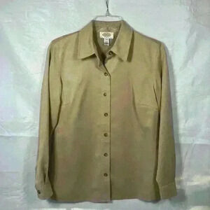 Talbots petite faux‎ suede brown tan women’s button up shirt size P Fall Soft