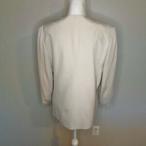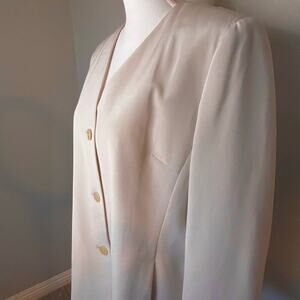 Talbots petites 100% silk 3 button collarless cream color lined blazer size 16P