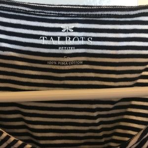 This Talbots size SP (small petite) tank top / shell / cami is great for work! Striped black and white; 100% cotton.