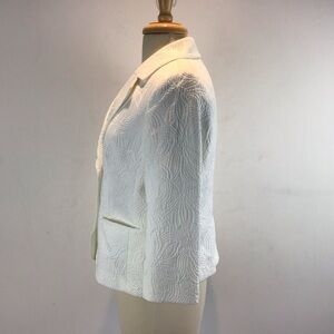 Talbots petites white matelasse 3/4 sleeve, fully lined 2 button blazer sz 10-12