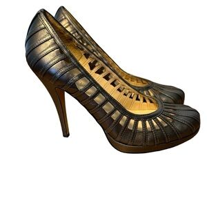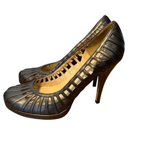 Talbots rounded toe pewter bronze 5 inch dressy, party, date night, wedding, mother of bride or groom, Las Vegas, black tie leather heels in size 9 in like new condition.