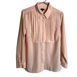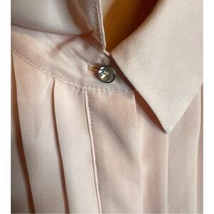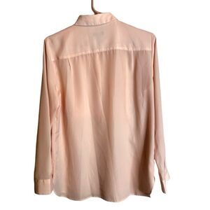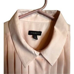 Talbots pink blouse with rhinestone top button accent. 1/2 button semi sheer med