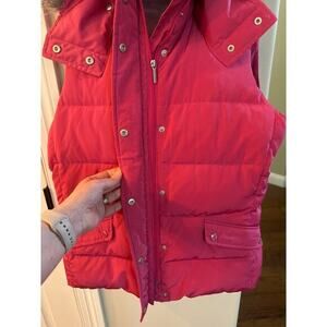 Perfect condition Talbots pink down puffer vest, size large. Faux fur hood that is removable.
