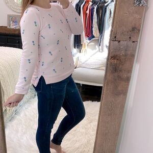 Talbots pink sweatshirt floral embroidered size small