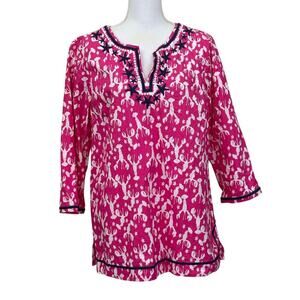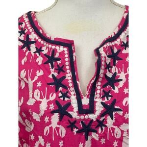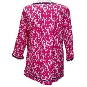 Talbots pink/white lobster tunic, large, whimsical, coastal, preppy, resort