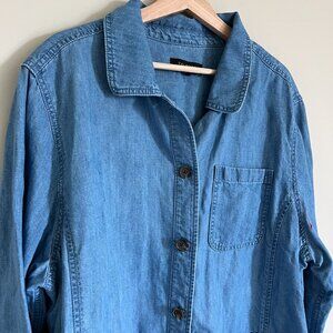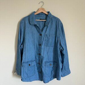 Talbots plus size 3X denim jacket oversized collared cotton hemp long sleeve