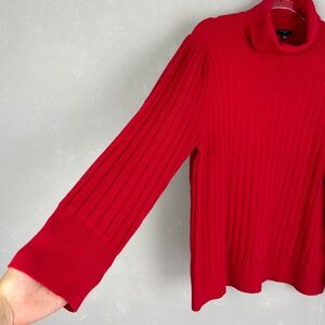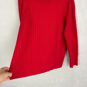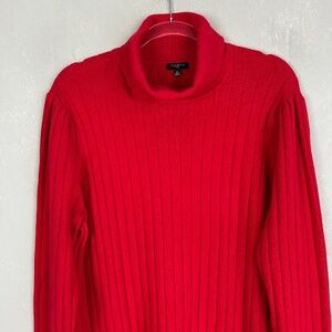 Talbots plus size 3X turtleneck sweater ribbed knit cotton blend red puff sleeve