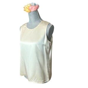 Elevate your wardrobe with the Talbots Pure Silk Reversible Top Tank, a versatile addition that promises both comfort and style. Crafted from pure silk, this tank features a round neckline and is sleeveless, making it ideal for all-season wear. The solid Ivory/ Cream color ensures it pairs effortlessly with any outfit, while its easy-care fabric allows for machine washing, making maintenance a breeze.