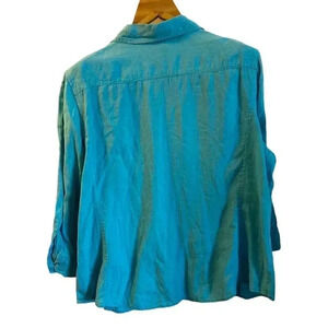 Talbots pure Linen Blouse Women’s XL Button Up Roll Tab Turquoise Irish Linen