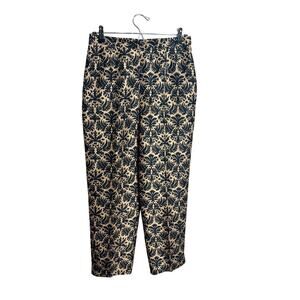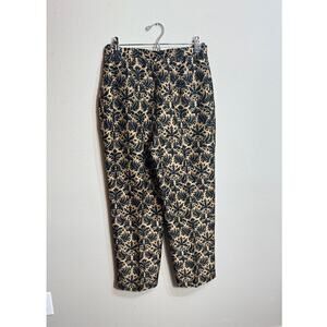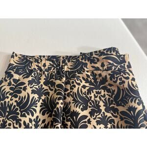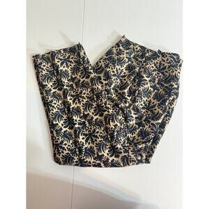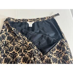 Talbots pure silk pants black tan patterned side zip lined elastic waist Sz 10P