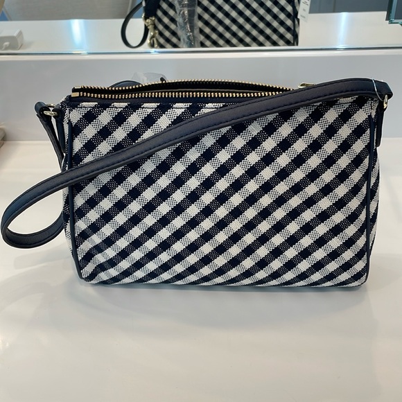 Cute blue and white check bag perfect for summer includes a longer leather strap.