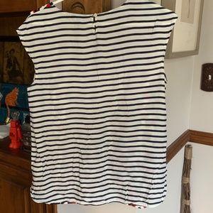Animal print front with a striped back. Very light rayon blouse. Great with white pants!!!!!
