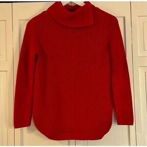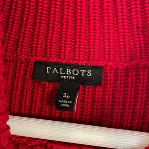 Talbots red 100% cotton knit ribbed split neck turtleneck sweater small petite