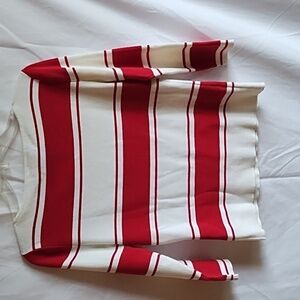 Three-quarter sleeves, little bit stretchy 17 inches across 22 inches long