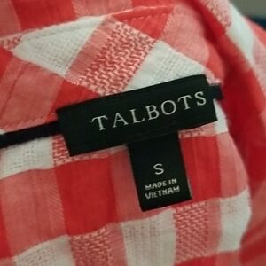 Talbots red check gingham button up Size small Bin 23 Bust 19 Waist 19 Sleeven22 Length 26 Vn5084