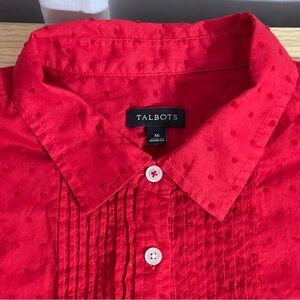 Talbots red long sleeve tuxedo type shirt women 16 roll up sleeves with buttons