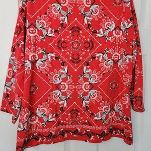 Talbots red paisley-style pattern top with 3/4 sleeves. Cotton/spandex. Size XL Armpit to armpit 21", length 26"