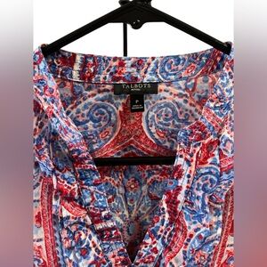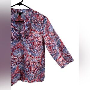 Brand: Talbots Size: P Lightweight Ruffled v neck collar 3/4 sleeve PTP 18” Length 22” 100% cotton