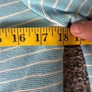 Talbots nautical horizontally striped and ribbed fabric with adorable anchor buttons throughout. Well structured, lined and vented in back. Functional front pockets. Beautiful soft robin egg blue. Perfect spring jacket.