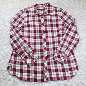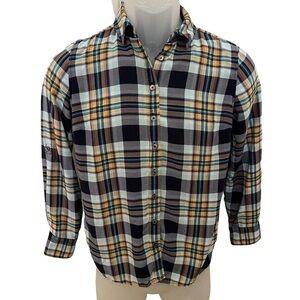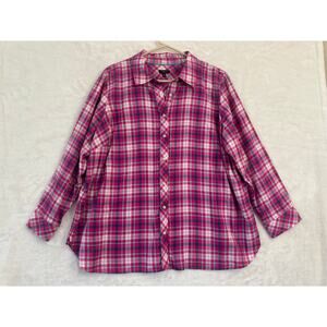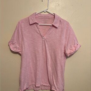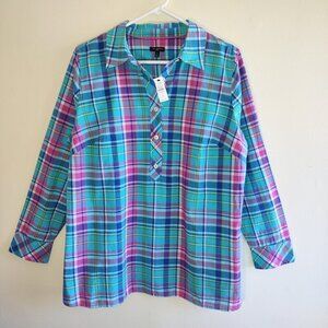 Talbots roll-up sleeve button down cotton shirt aqua & white XLp