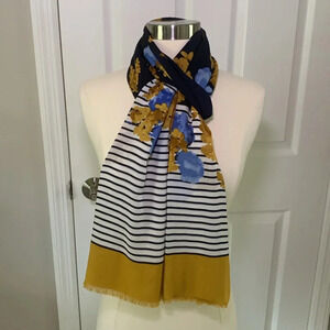 Talbots scarf- navy and white stripes with gold and blue floral accents