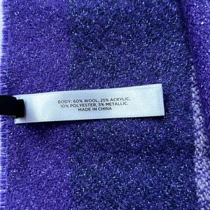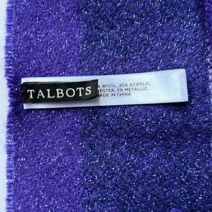 Purple and blue wool blend with metallic thread Talbots scarf./wrap. Very soft scarf in excellent condition from smoke and pet free home. About 20” wide and 70” long excluding fringe.