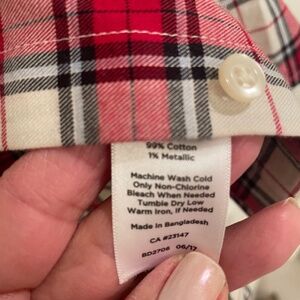 Talbots shimmer red plaid shirt with fine metallic- long sleeve button down S