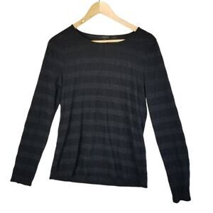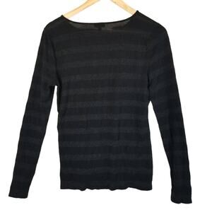 Talbots shirt small Black Sheer Sparkle Striped Long sleeve