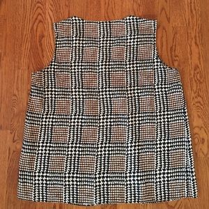 Sleeveless 100% silk blouse in brown and black houndstooth print. Perfect under a suit jacket. Never worn.