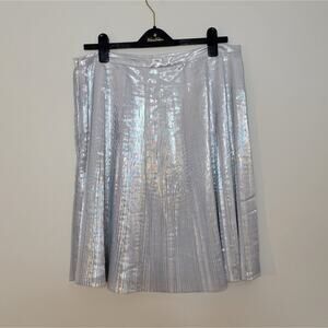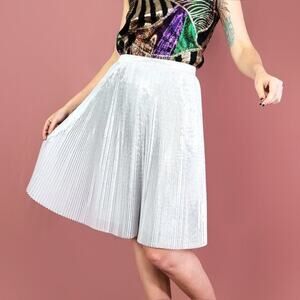 Super shiny, chic pleated skirt with lots of body that's perfect for holiday parties, cocktails, and evening events
