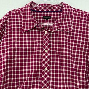 Talbots size 3X Burgundy Gingham Plaid Preppy Long Sleeve Button Down Office