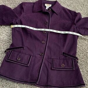 Talbots size 8 stretch jacket plum purple with velvet trim button up