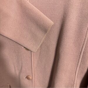 Size Small Talbots blush colored button up sweater with functional front pockets and flattering seaming. Stand up collar. Cotton/rayon blend.