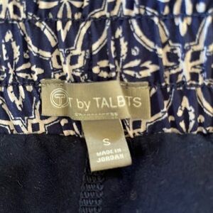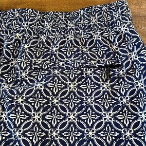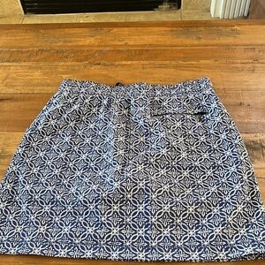 Talbots skort, size small blue and white batik pattern, elastic drawstring waist, 2 front pockets, one zipper back pocket, in good condition