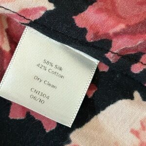 Talbots black pink & green floral print light weight blouse. 58% silk & 42% cotton. Pre owned like new.