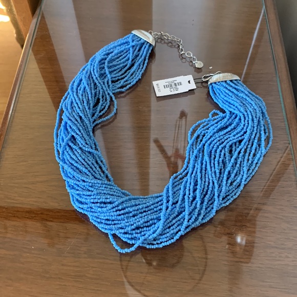 New with tags. Great piece for spring!! Beautiful blue statement necklace will add a pop to all your spring looks. Can be dressed up or worn with jeans and a blazer! The picture shows the necklace worn on the shortest length. The necklace can be extended for a longer drop.